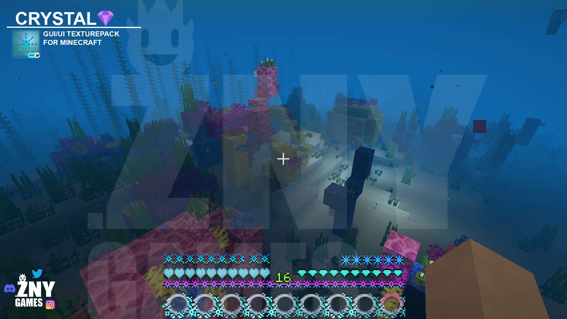 This dazzling texture pack brings a sparkling crystal and diamond theme to your Minecraft experience. Enjoy a brand-new start screen and GUI, designed to immerse you in a glittering, gem-inspired world.