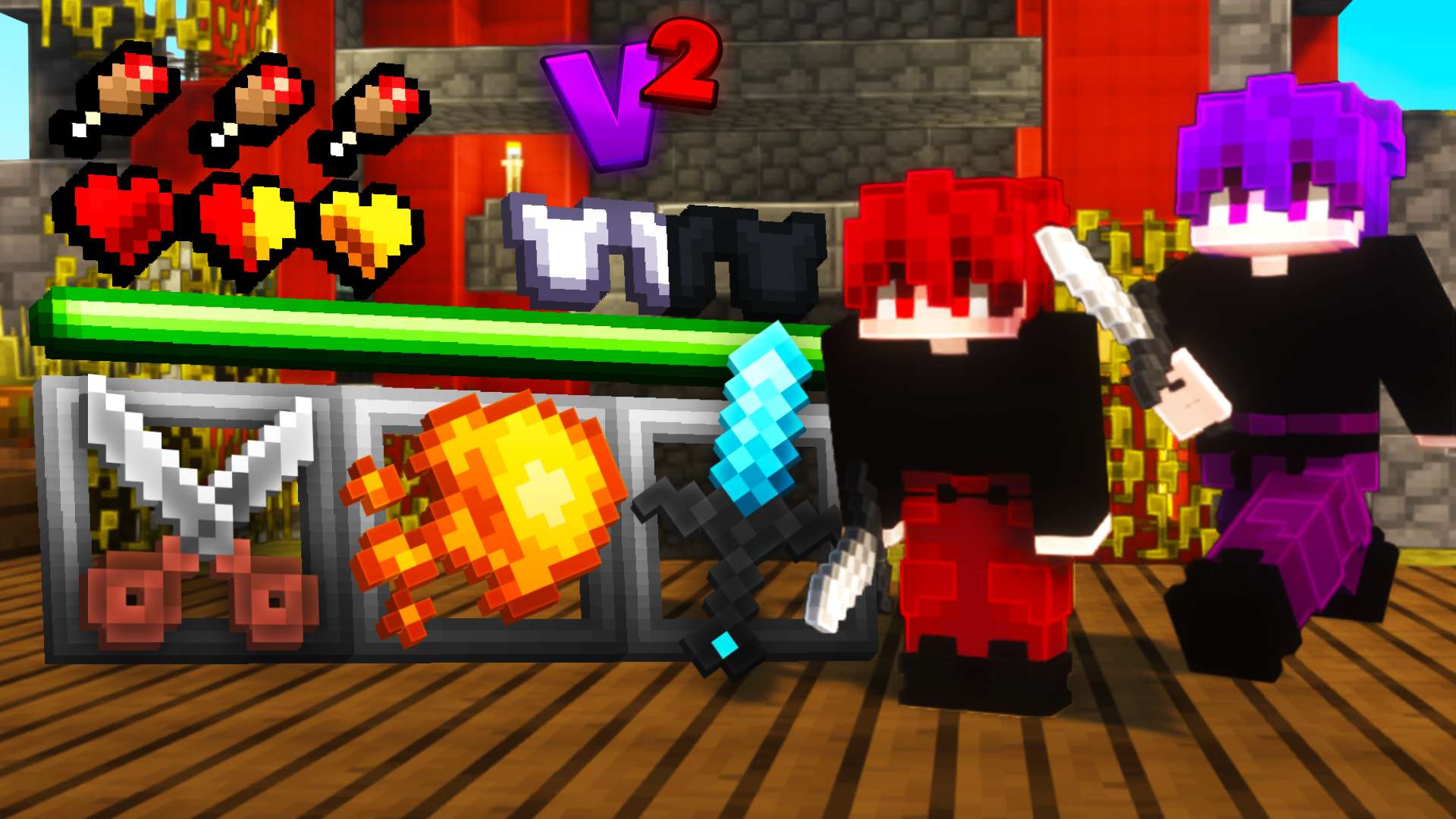 includes 3d items such as Ladder, bed and custom bedwars shop upgrades and the bridge overlay with some animated items including fireballs and flint and steel and such.