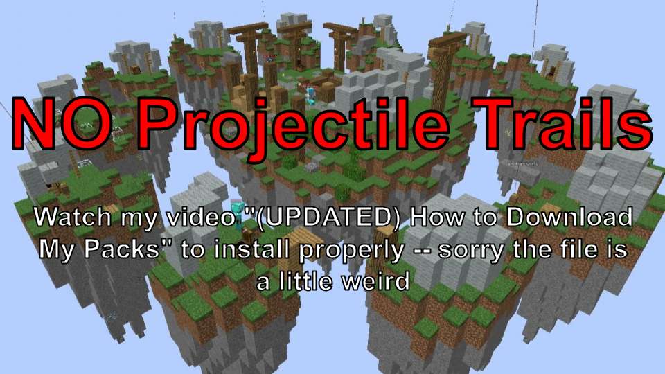 An overlay to remove all the "Projectile Trails" in Hypixel Skywars and Duels, which lag my game and clutter the screen, since there's no other way to turn them off. In your pack list, please place this one on top of everything else for the effect to work. To install the pack properly please follow this tutorial https://youtu.be/25RafNwFQD4?si=viZLMqy7TVkcIrSp.